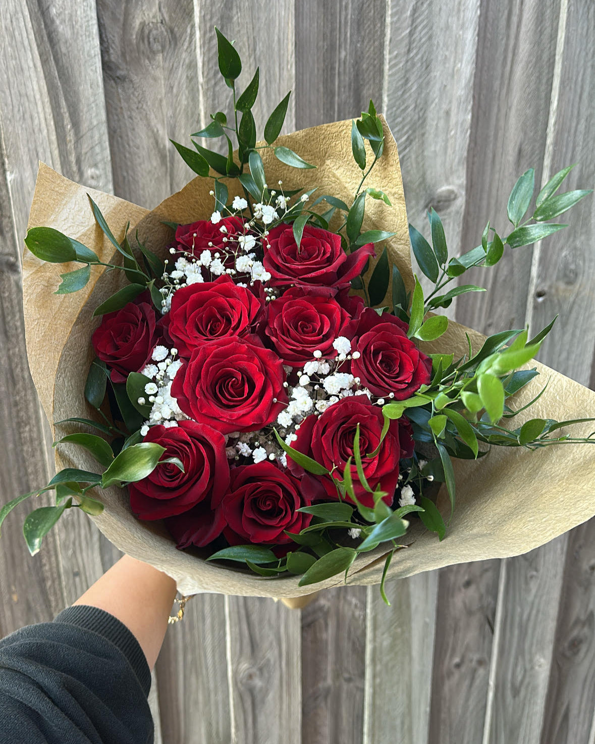This arrangement showcases ten exquisite long-stemmed Ecuadorian roses, renowned for their vibrant hues and lasting beauty. Delicate gypsophila adds a soft, cloud-like texture, while lush Italian ruscus provides a fresh, green backdrop. Perfect for anniversaries, heartfelt gestures, or simply brightening someone's day, this bouquet brings a touch of classic charm to any occasion.